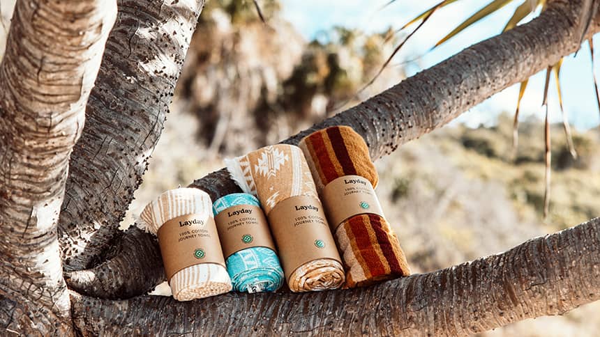 小さくパックでき、速乾性で、プラスチック製マイクロファイバーを一切使用しない、Laydayのタオルはあなたのパックや私たちの地球環境によくフィットします。