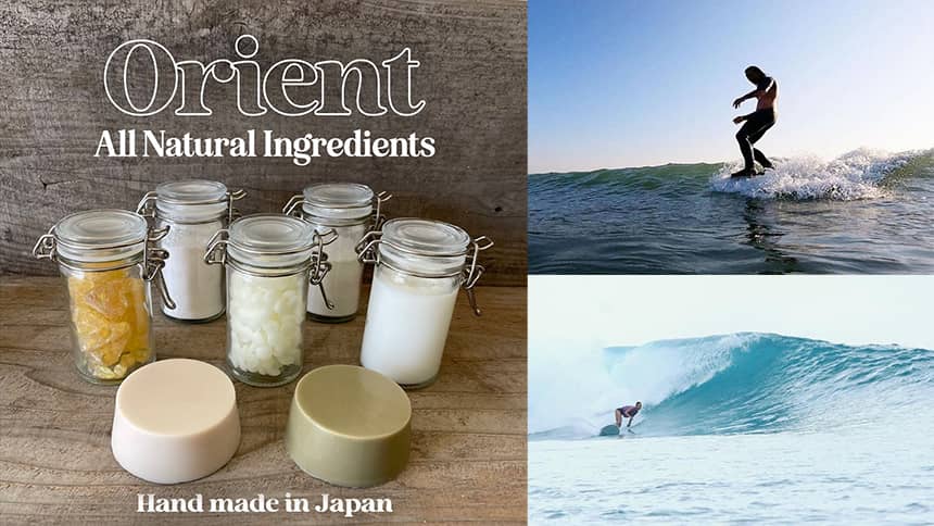 現在もパラフィンが主成分の石油系ワックスが市場の大部分を占めている中で、Orient Surfwaxは石油由来の成分を使用しないサーフワックスを販売します。